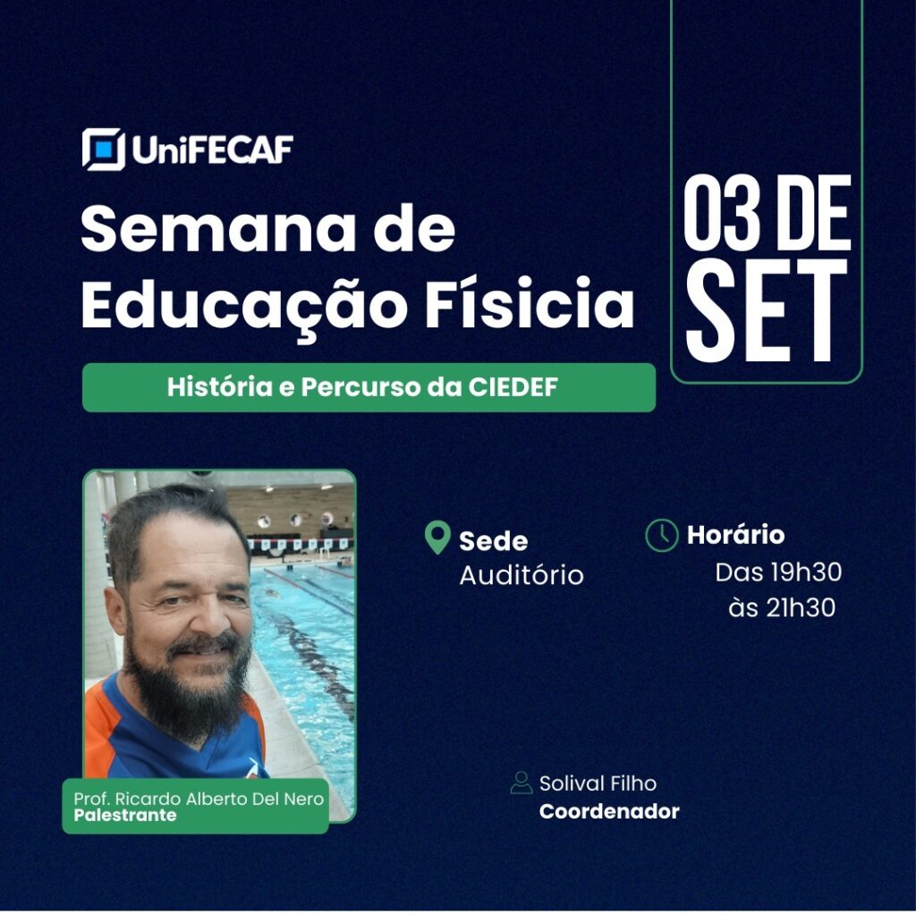 A CIEDEF agradece aos professores Cezar Augusto Figueiredo Bezerra “Bolinha” e Solival Filho, responsáveis pela organização da atividade, que proporcionou um espaço de diálogo e inspiração dentro da programação da Semana de Educação Física da UNIFECAF.